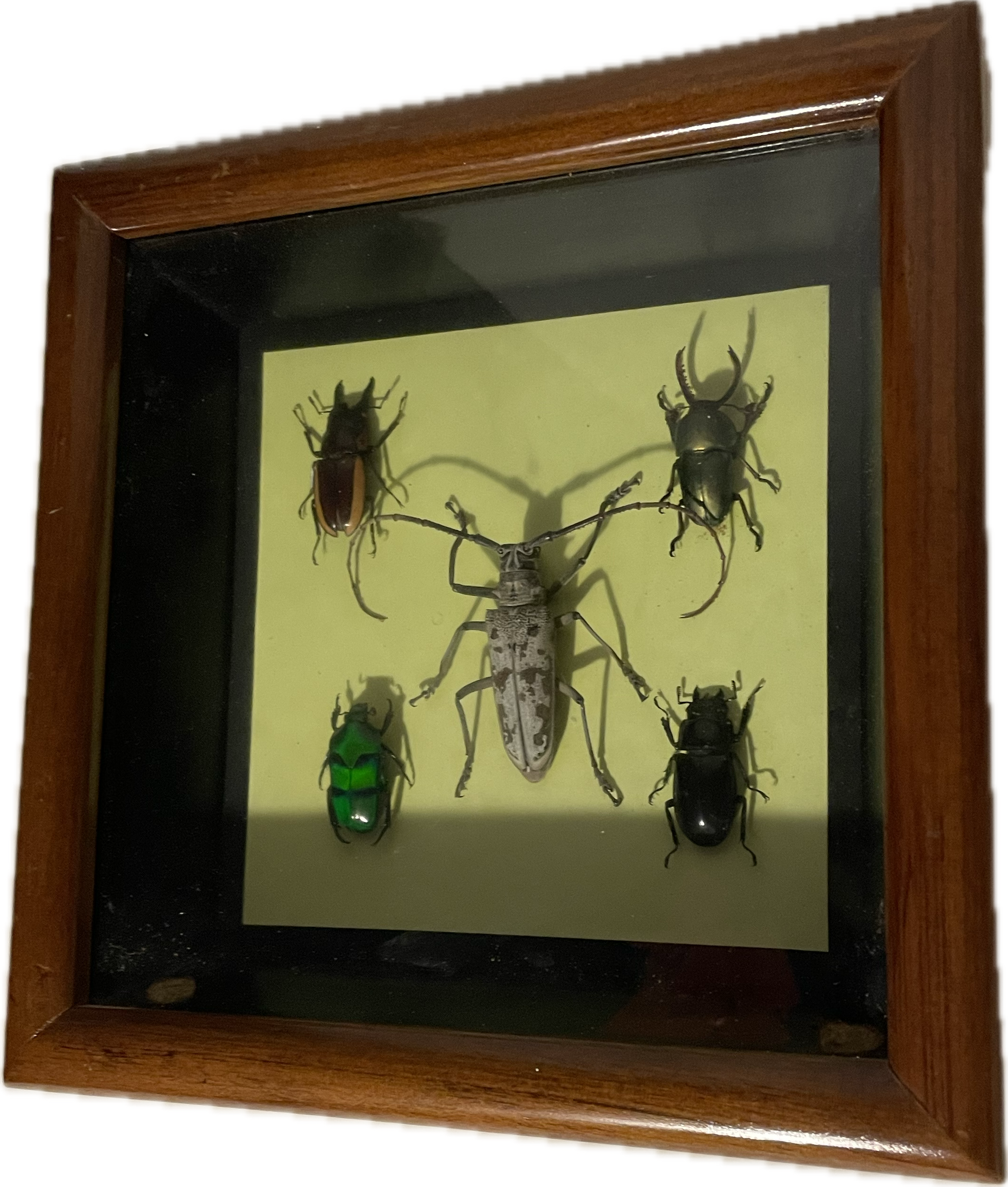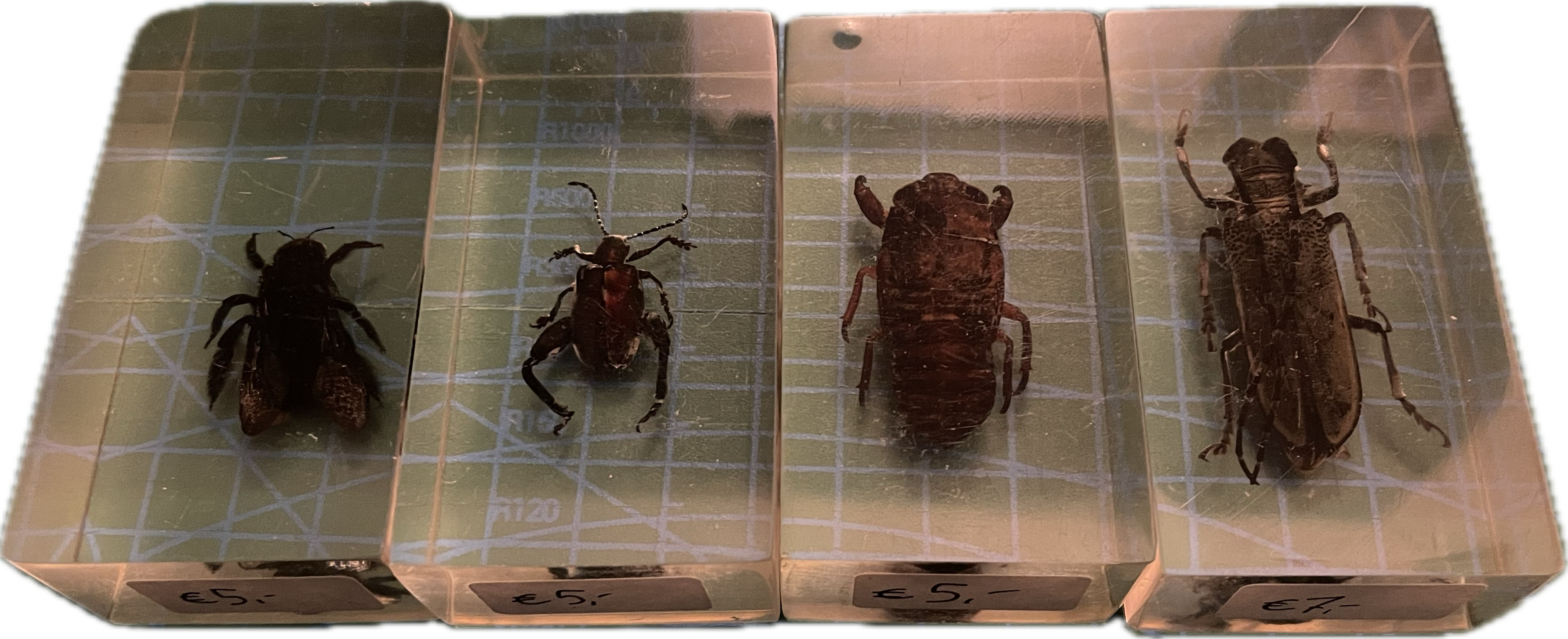 i eventually bought 5 bugs that are displayed in one frame. they're so beautiful. i got a green flower beetle(green barred scarab), a longhorn beetle and three different stagbeetles: female stag beetle, New Guinea stag beetle and the prosopocoilus bison. Then he said i can have 3 resin bugs FOR FREE "because you love bugs so much". i got the sagra beetle, longhorn beetle and a cicada nymph. "oh you can have this bee too if you want." BRO omygod. i definitely saved up 22 euro's (25 dollar) as you can see.
